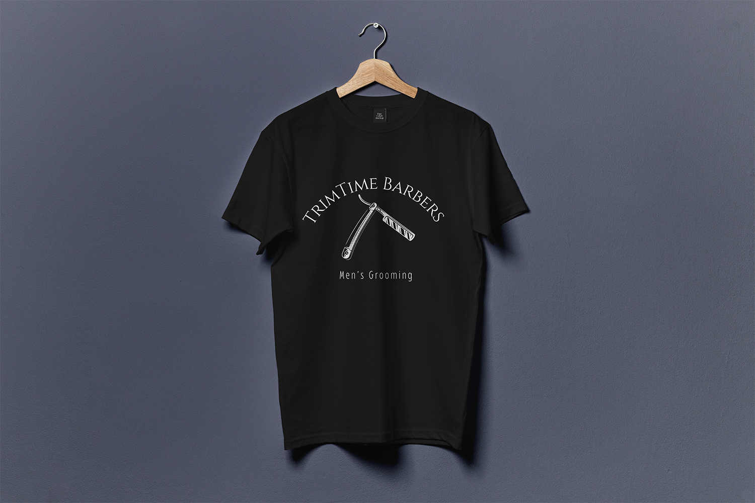 Solution: I created a bold, typographic logo using a vintage razor icon and paired it with a clean black-and-white business card for a premium look